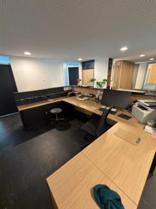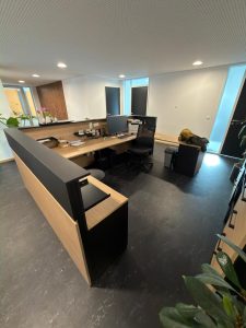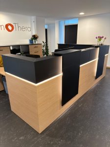Diese Woche durften wir gemeinsam mit unserem Team von RM Büro & Objekteinrichtung e.K. eine physiotherapeutische Praxis bei der Neugestaltung ihres Empfangsbereichs begleiten. Geplant und realisiert wurden eine neue Empfangstheke sowie eine hochwertige Lamellenwand im Wartebereich – funktional durchdacht und gestalterisch sauber aufeinander abgestimmt.